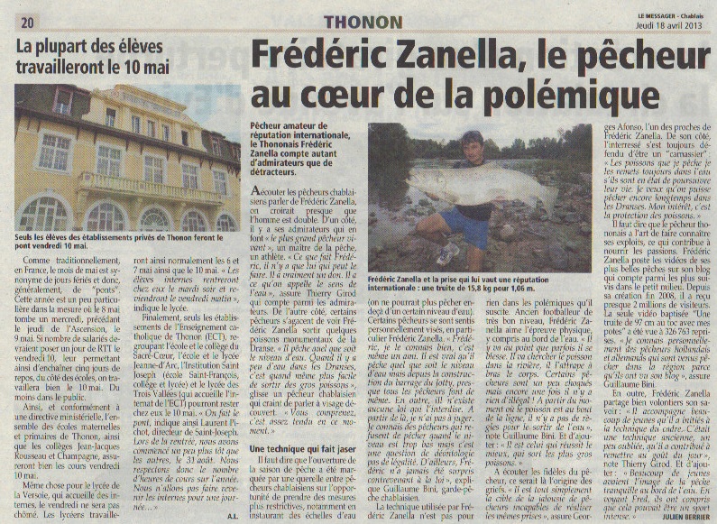 Salut Frédéric, je n’ai pas bien saisi le problème … Que ce passe t il a thonon avec la dranse ? J’ai voulu aller jeudi pêcher sur la dranse mais il y avait trop d’eau.. Quand penses tu qu’elle va descendre ? Quelle est la meilleur période pour la dranse ? Bon courage et te laisse pas influencer par ces jaloux a plus. Gaby de Geneve